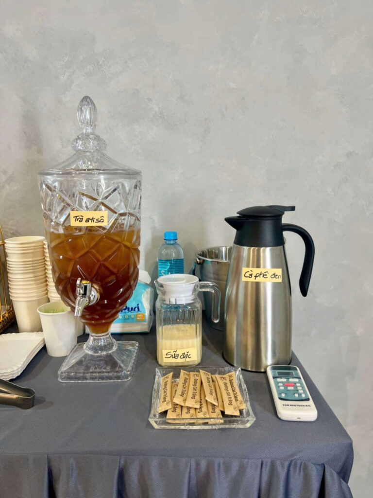 Gói tiệc ngọt cho sinh nhật công ty thật tuyệt vời! Bánh ngọt handmade như cupcake và tart trái cây ngon miệng, kết hợp trà xanh và cà phê tạo không khí vui vẻ. Hộp cake box làm quà tặng thêm phần ý nghĩa. Dịch vụ nhanh chóng, giá trị vượt mong đợi!